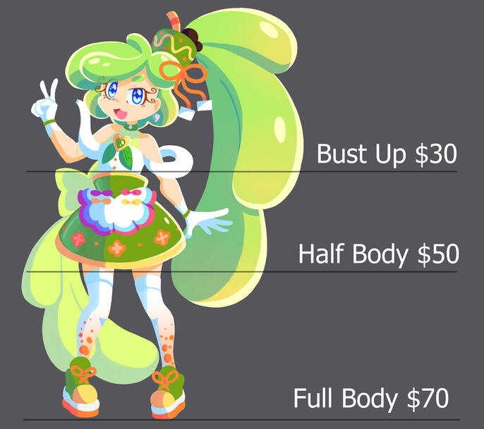 Full Body: $70 Lineless Style (+ $5 mascot character)